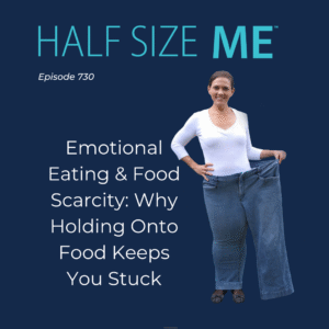 In episode 730 of The Half Size Me™ Show, Heather talks to Ellie about emotional eating driven by food scarcity and fear of letting food go. They chat about:
